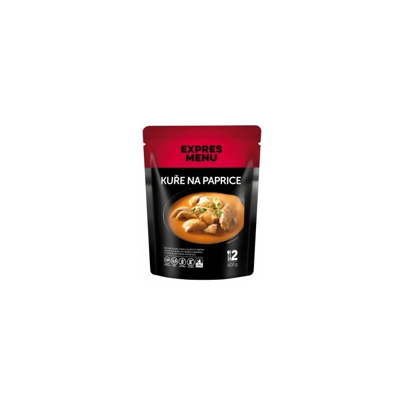 kuřecí maso stehenní (31 %), drůbeží vývar (voda, drůbeží maso a kosti), mléko, smetana, cibule, rýžová mouka, kukuřičná mouka, řepkový olej, sůl kamenná, paprika mletá.